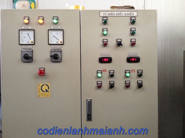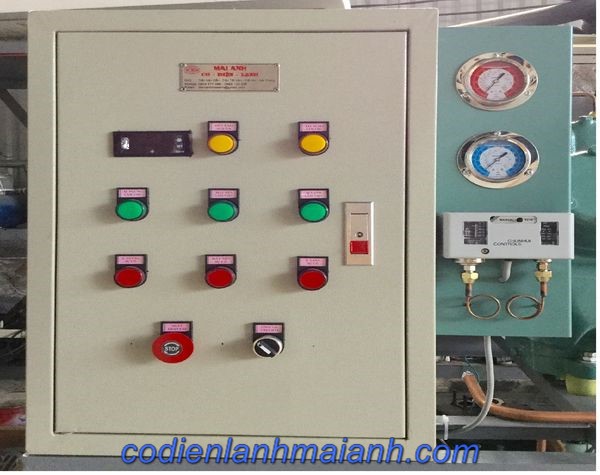 Tủ điện điều khiển của hệ thống lạnh do xưởng thiết kế và chế tạo bằng tôn mạ điện, sơn tĩnh điện. Các thiết bị điện nhập của các hãng uy tín trên thế giới Siemens, LS, Schneider…